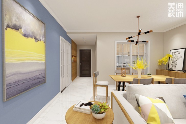 但不要使用高大的實體隔斷,也不宜過多做隔斷。可以選擇軟簾、玻璃、矮柜等,起到了區(qū)分了空間也讓視線相通。