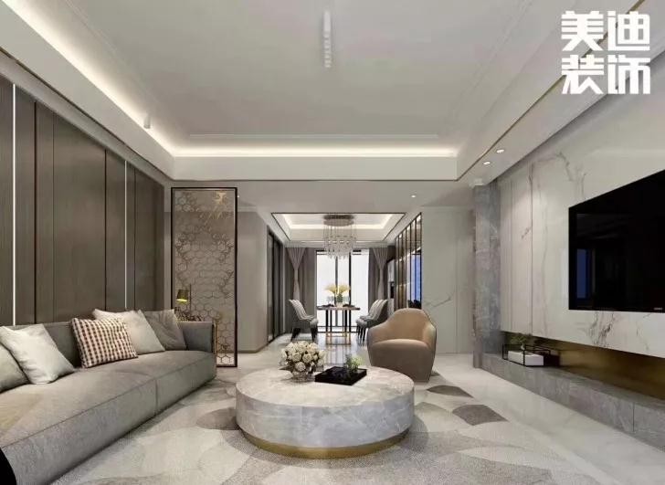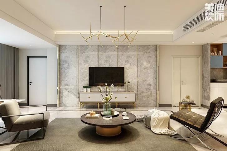 港式現(xiàn)代風格中,講究線條感,就像這個案例中,有垂感的燈具,利用鏡面、石材打造的幾何造型裝飾,線條干凈利落,增添了空間的立體感。