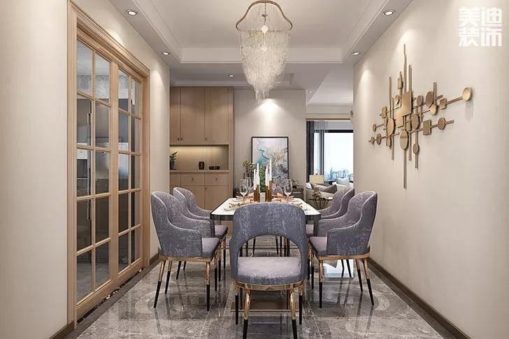 還有,對石材、鏡面、金屬、布藝等材質(zhì)合理利用,使空間層次豐富。