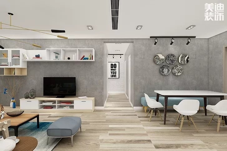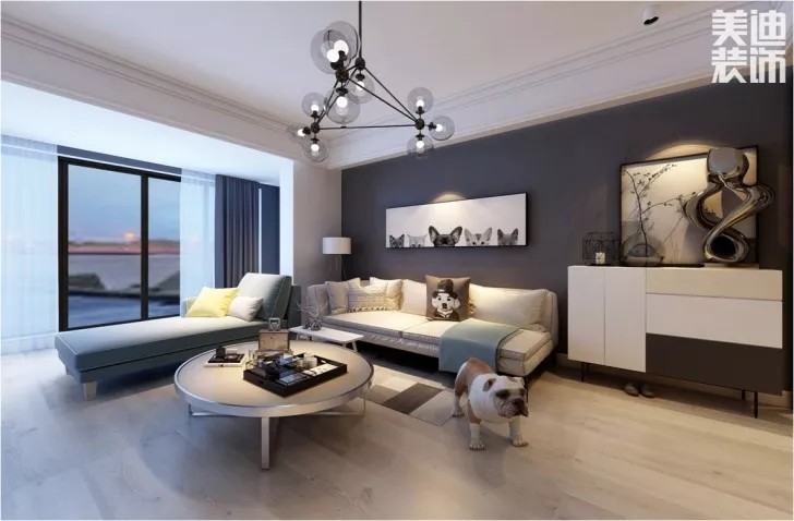 以灰白色為主色調,淺灰為基,純白為輔,佐之以深色系家具和軟裝,不艷麗也不乏味。