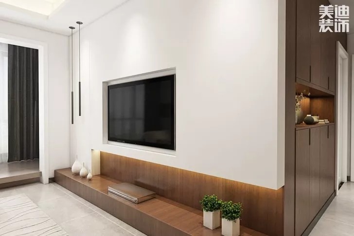 選擇吊柜或矮柜來裝飾電視墻面,為空間凸顯更多層次,讓所有的零碎雜物統統收納于無形之中,也可以帶來意想不到的美感。
