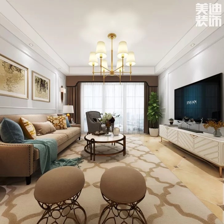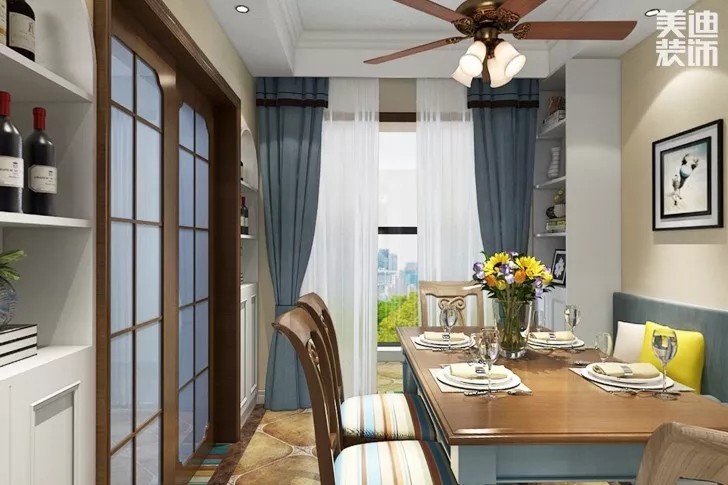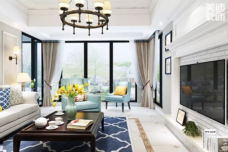 同樣的配色環境下,窗簾風格能為空間裝飾加載一些藝術個性。