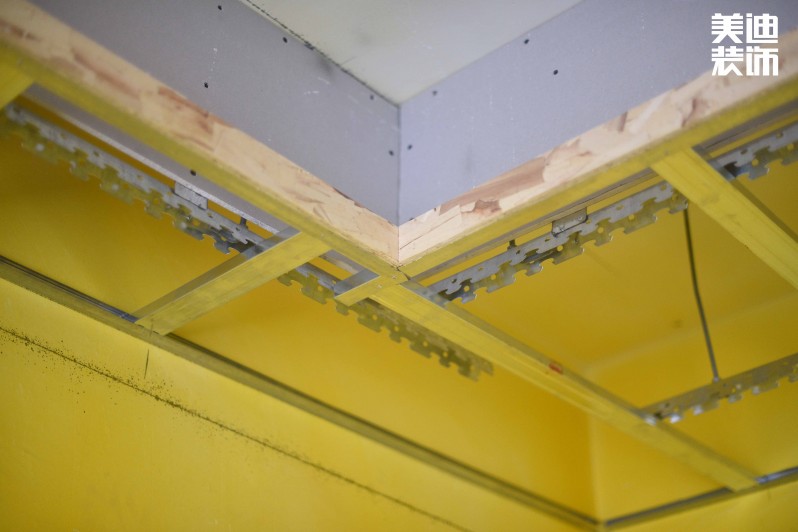 由于我的瓷磚還沒有選定,所以監(jiān)理把后續(xù)的木工提前進(jìn)場了。大多數(shù)人可能以為正常的施工步驟是:水電→泥工→木工→油漆→收尾。其實(shí)裝修中很多步驟只要沒有直接的沖突,都是可以相互換的,客廳吊頂已經(jīng)基本做好了輕鋼龍骨。