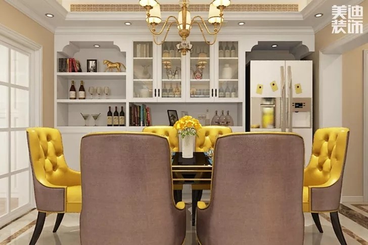 家具的選擇應與歐洲硬裝飾的細節相稱,選擇深色的配以西方復古圖案和非常西式的圖案家具,與氣氛和色調相協調。