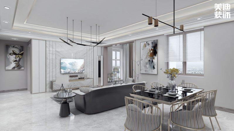陳錦設計師的這套案例作品有很多特點,張弛有道,低調卻不空虛,自由卻不放縱,精致卻不盲目,這樣的輕奢式生活態(tài)度無疑是愜意的。全屋采用了大面積的灰白,外加金屬和木質家具,整體風格簡約大氣。