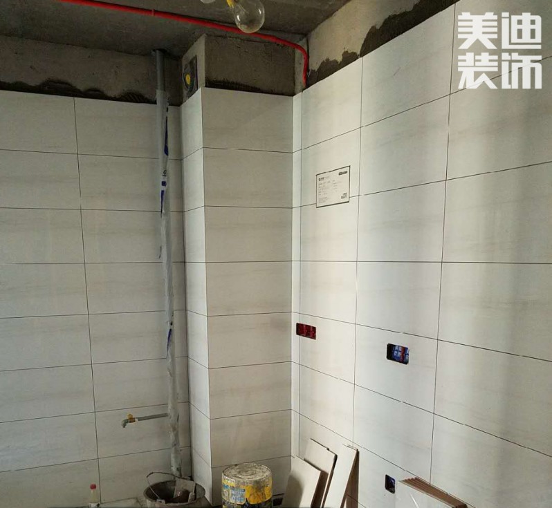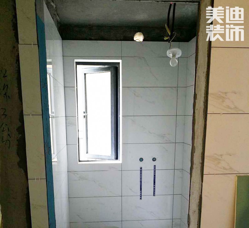 貼磚這部分要表揚一下美迪裝飾的師傅,師傅把廁所上磚貼的很漂亮,他做事很細心,不讓我費磚,活也做的很漂亮。