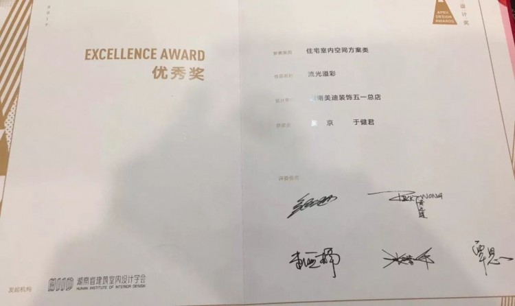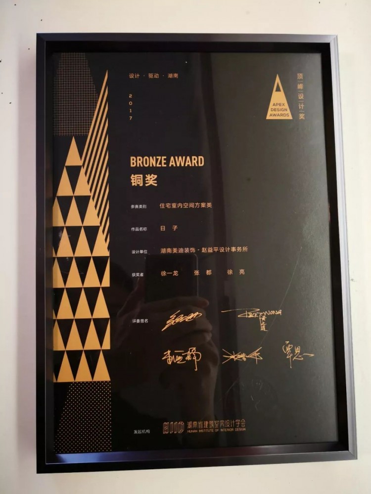 昨晚,由湖南省建筑室內設計學會聯合湖南省藝術家協會、湖南省建筑設計院有限公司、現代房產頻道共同主辦的2017頂峰設計獎·APEX學術論壇暨頒獎盛典在長沙瑞吉酒店舉行,美迪裝飾榮獲2017頂峰設計獎金獎、銅獎兩項大獎。