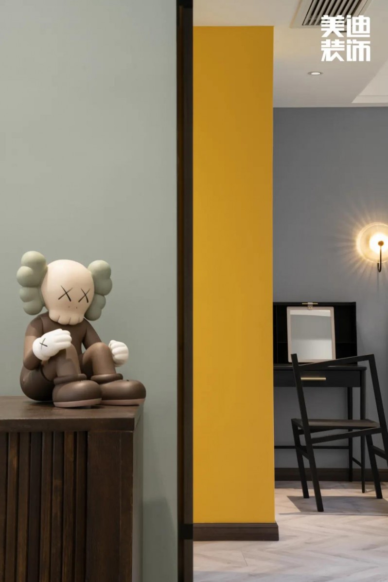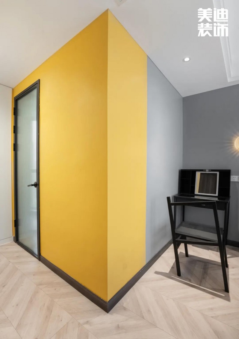 轉(zhuǎn)角黃色設(shè)計,看似突兀,實則不然,黃色的點綴讓室內(nèi)環(huán)境更加輕快活潑,帶來無限活力。黃色墻面搭配木地板,自然又舒適,讓室內(nèi)空間更溫馨。