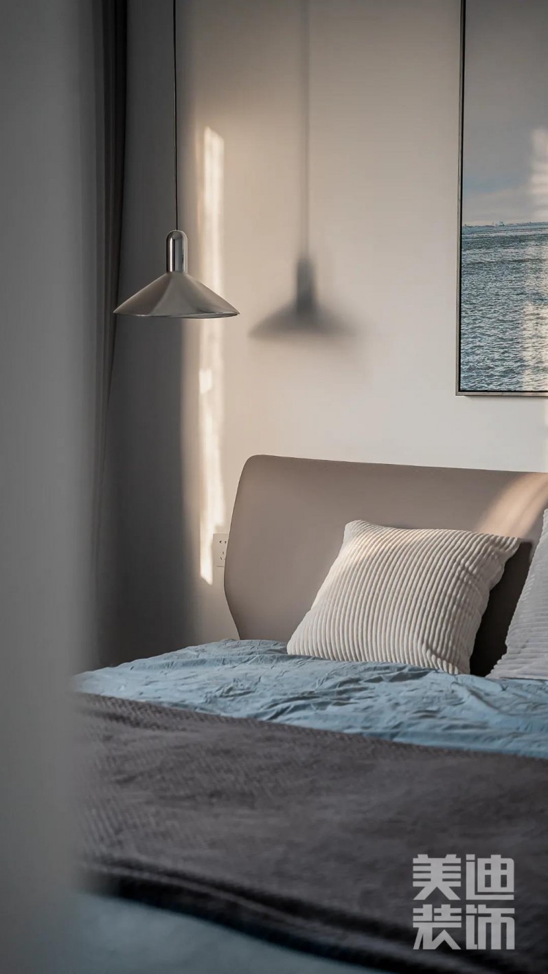 溫潤的床品顏色,營造舒適的睡眠氛圍,床頭裝飾畫增添藝術(shù)感,吊燈為夜間生活提供照明光線,美觀實(shí)用又非常的大氣,陽光照進(jìn)臥室就如同理想生活照進(jìn)現(xiàn)實(shí)。