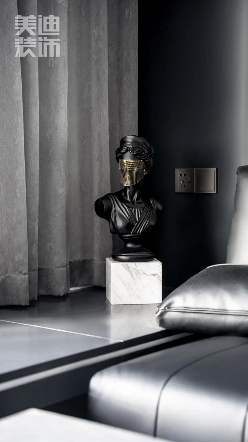 黑白撞色設(shè)計(jì),增加了視野的深度,空間上給人以大氣的感受。黑與白的經(jīng)典搭配,營造出低調(diào)不失格調(diào)的高級感,讓整體空間不顯俗套。飄窗加坐臺,既是會(huì)客區(qū)還是游樂園還能睡覺,實(shí)現(xiàn)了空間的多功能使用。