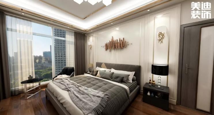 7、臥室的照明要以柔光為主,主燈的位置盡量避免設置在刺眼的地方,床頭的光線也要柔和一點,太亮的燈光會降低人體人、褪黑激素的產生,不利于睡眠。