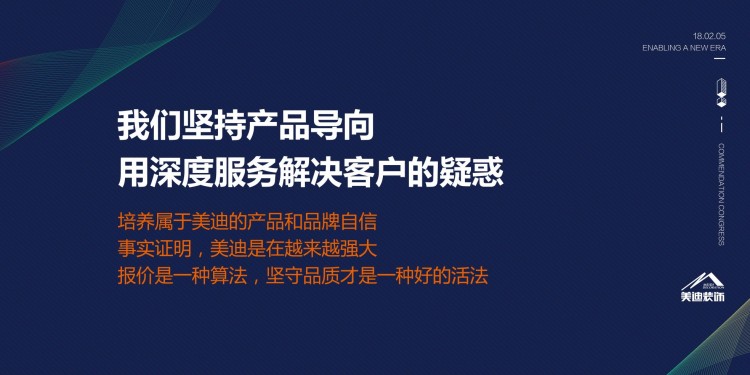美迪裝飾集團總裁陳明賦先生在做2017年度工作報告之前,先和在座的家人們分享了三個源自美迪人溫暖而感動的故事。