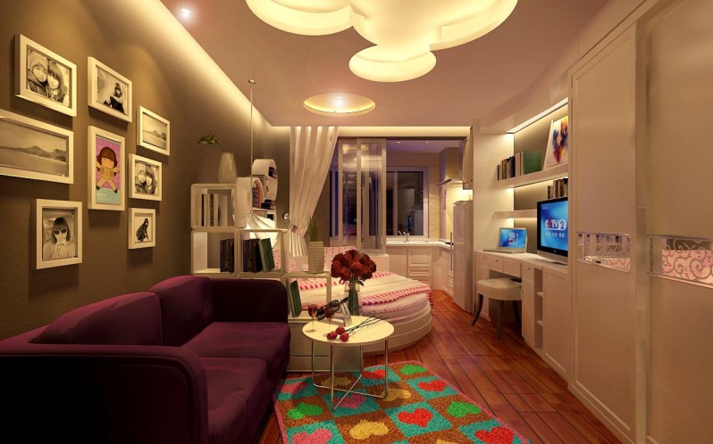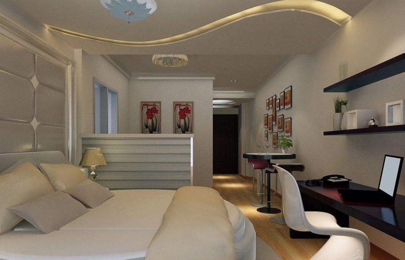 現(xiàn)在的小戶型單身公寓層高都不是很高,戶型的樓層高度不夠2.8米的千萬(wàn)不要做吊頂,因?yàn)橐话阕龅蹴敃?huì)降低25厘米高度,這樣就會(huì)使原本就不大的空間變得狹小使人感到壓抑,其實(shí)不吊頂也可以設(shè)計(jì)得很好看,要是覺得單調(diào)可以選擇用石膏線條來(lái)進(jìn)行裝飾點(diǎn)綴。