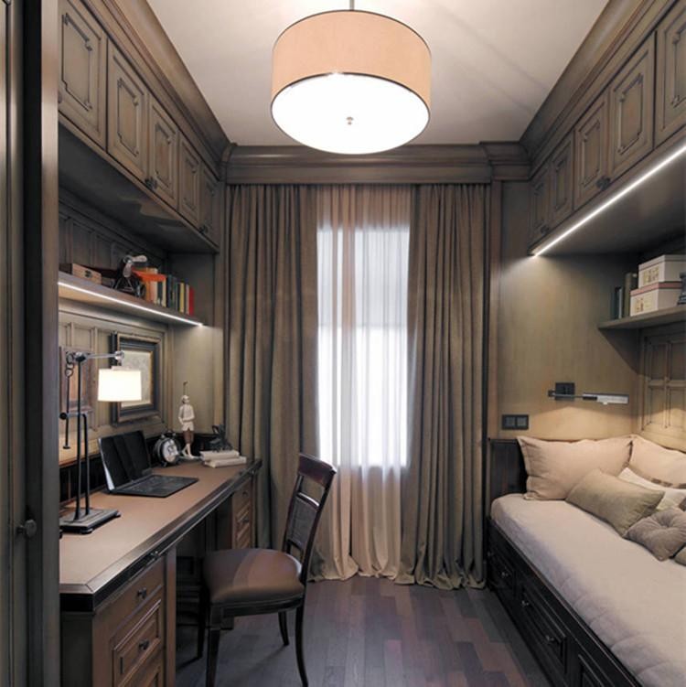 若是一室多用的“書房”,宜用半封閉,不透明金屬工作燈,可將光集中投到桌面上,既滿足作業平面的需要,又不影響室內其他活動。若是在坐椅、沙發上閱讀時,最好采用可調節方向和高度的落地燈。