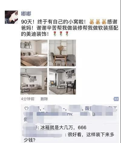 腆著臉去打聽了一下隔壁小姐姐的裝修情況,才知道原來小姐姐選的是時下最省心的整裝模式,美迪裝飾主打998元/㎡的宜家風整裝,包含全部主材輔材和燈具,還免費送了價值3萬元的全房家電!