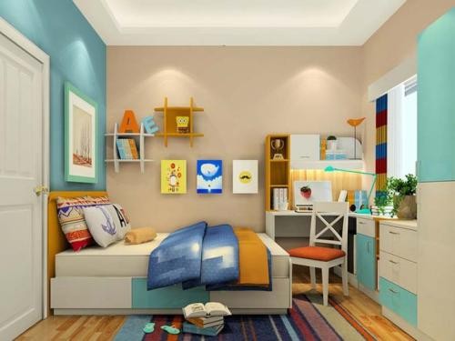 二、兒童房的裝修要保證科學、環保、無污染。特別是要注意不打地臺、不鋪地毯、不做吊頂、少用有顏色的油漆和涂料