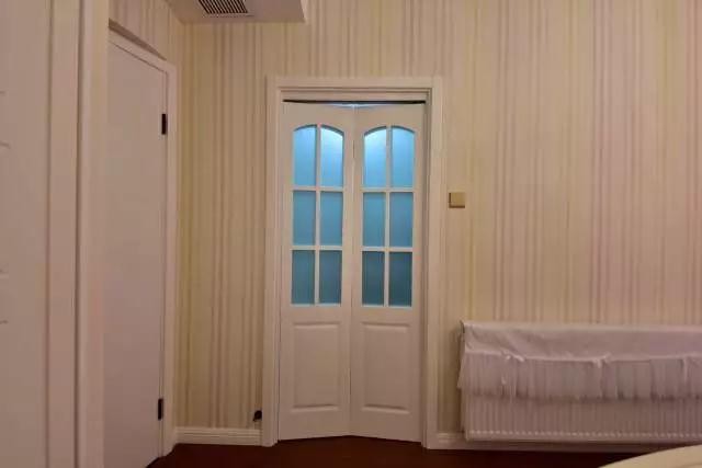設計師把浴室安排在了一個很大膽的位置,在客餐廳一體化空間中,單從外觀上看很少會有人想到是浴室,增添了幾分神秘感。