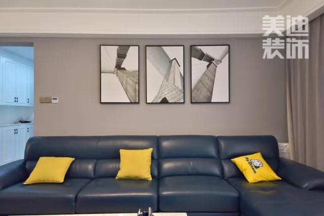 客廳沙發(fā)上的壁畫也是設計師為業(yè)主精心挑選的,建筑的灰白調(diào),以及層次分明的線條感,極大程度上提升了整個空間的格調(diào)。