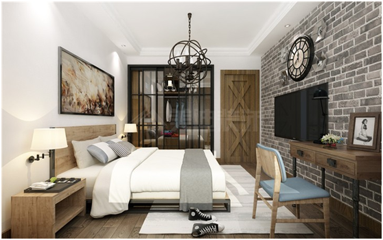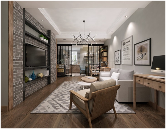 公寓整體設(shè)計(jì)以黑白灰為主,符合年輕人的審美,簡(jiǎn)約卻不失精致感,軟裝家居多以工業(yè)風(fēng)的鐵藝為主,不僅點(diǎn)綴房間突出了主題,和整個(gè)公寓裝修風(fēng)格的搭配也是相得益彰。黑白色調(diào)的經(jīng)典搭配,融入一些灰色、木色,在不搶主色調(diào)風(fēng)頭的同時(shí),也能起到空間過渡的修飾作用,簡(jiǎn)單但不單調(diào)。