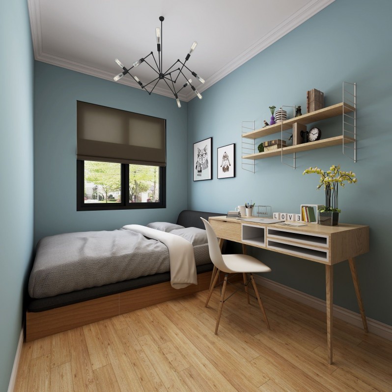 3、雙人主臥室的最標(biāo)準(zhǔn)面積=12㎡,夫妻二人的臥室不能比這個再小了,在這樣的房間里除了放一張必備的床以外,還可以放一個雙開門的衣柜(120*60)和兩個床頭柜。