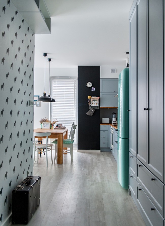 廚房的色彩和圖案都比較多,但是并不會引起眼睛的疲勞,明亮色與暗色的搭配,使空間看上去鮮亮清新但不輕浮。
