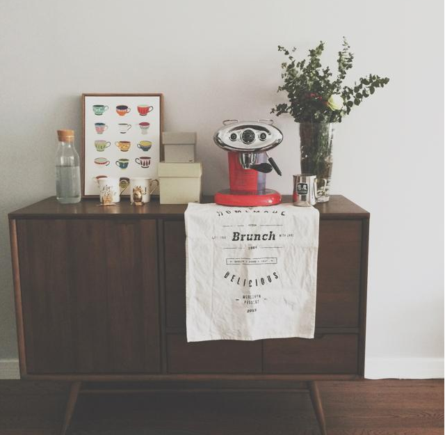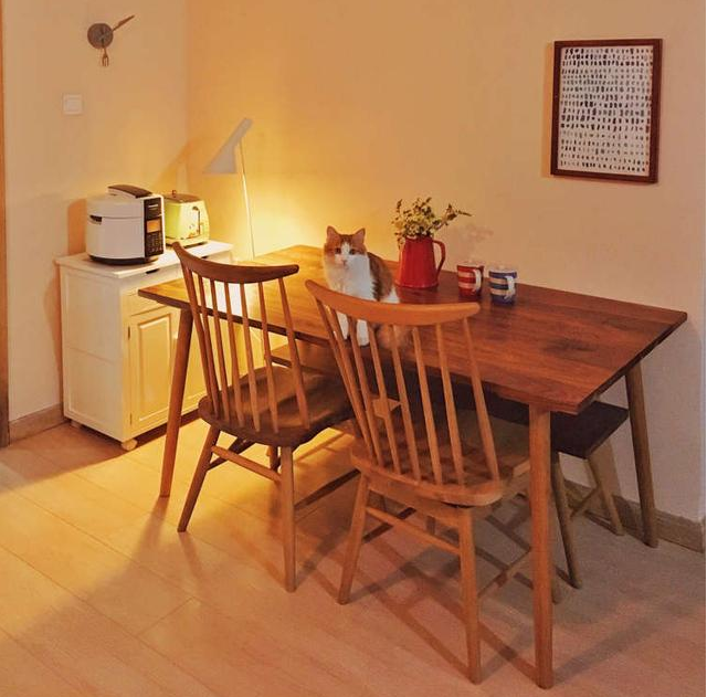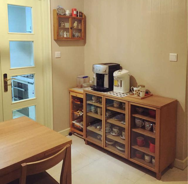 小尺寸的餐邊柜,放在墻邊剛剛好。并且電飯煲也可以放在臺面上。