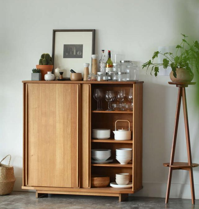再也不用擔(dān)心好看的碗盤杯子沒地方展示了。把它們都整齊的擺放在餐邊柜里吧。