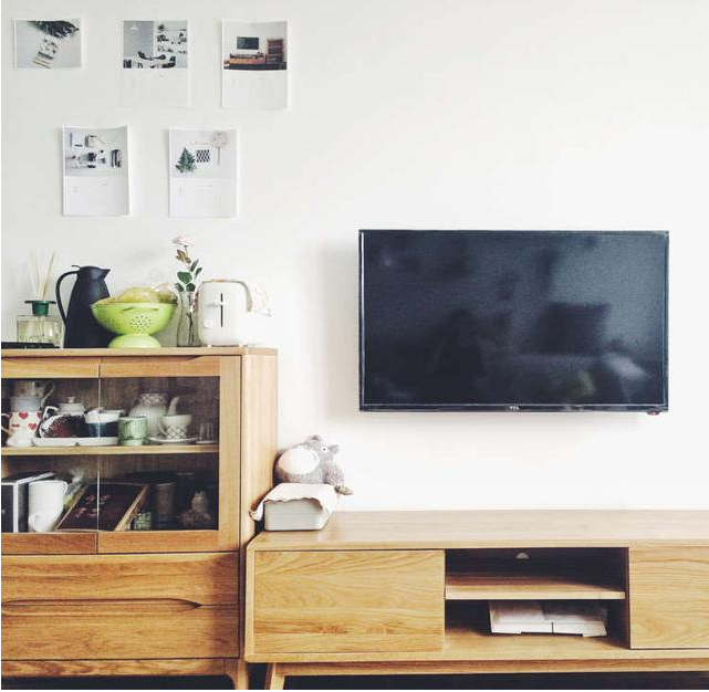 用裝飾畫、小盆栽來裝飾餐邊柜的臺面。