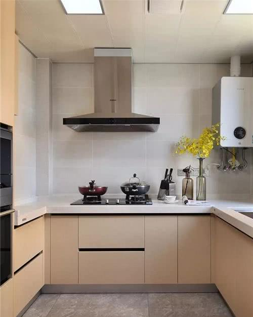 ▲空間開闊,自然得打造個U型廚房了,做起菜來也不會覺得擁擠。暖色調的櫥柜,給人特別舒服的感覺。