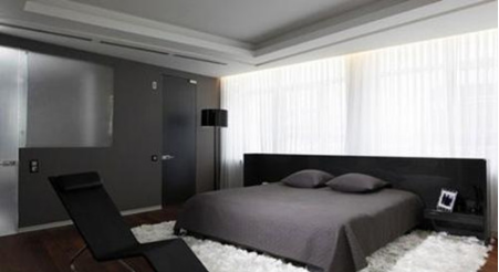 3、黑白色裝修風(fēng)格還可以讓人感覺非常溫馨,白色的被套,白色的墻面再點(diǎn)綴上些黑色的家具,讓人感覺十分溫馨精美。