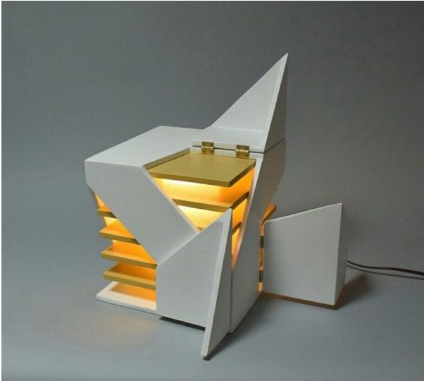 造型很獨特,個性十足,是這燈的亮點,在睡前,將“盒子”外部的遮擋物全部打開,讓光線變得充足;反之,將大部分的光線遮擋住自然光線就變暗!