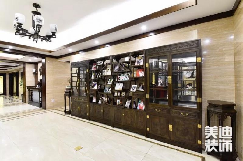 因為業主平時喜愛收藏,設計師洪老師根據業主這一習慣,在客廳這一處設置了博古架,不僅合理利用了空間,讓客廳在視覺上顯得更加豐富。