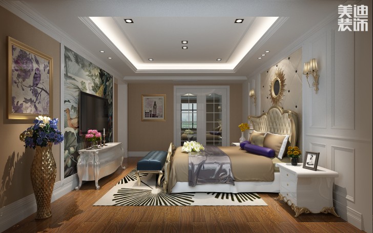 北辰定江洋260㎡現(xiàn)代混搭風(fēng)格裝修案例實(shí)拍圖-臥室