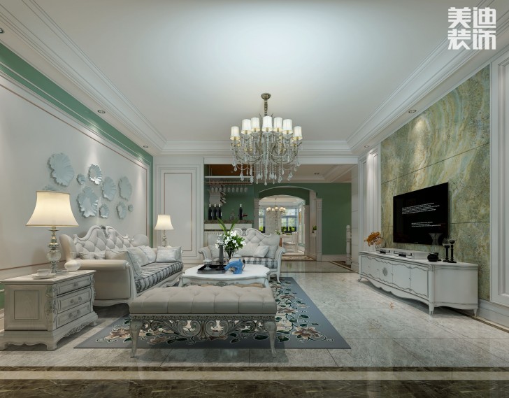 北辰定江洋260㎡現(xiàn)代混搭風(fēng)格裝修案例實(shí)拍圖-客廳