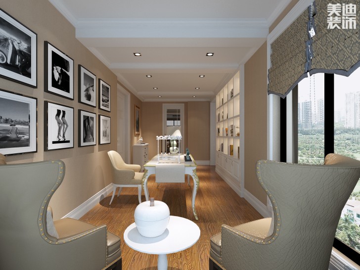 北辰定江洋260㎡現(xiàn)代混搭風(fēng)格裝修案例實(shí)拍圖-書房