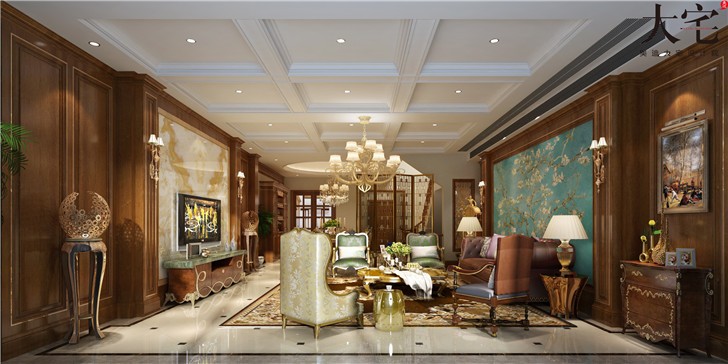 金地三千府402平歐式風裝修案例圖—客廳