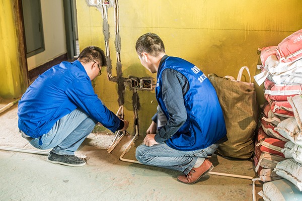 1.為了防止泥工施工過程中有水滲入電線使電線老化在電線外層線管接頭處用防水膠布密封