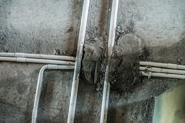 線管鋪好后,需用水泥固定位置,確保水管位置